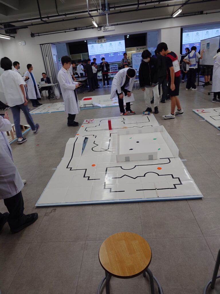 世界的なロボットプログラミング大会の(ロボコン)目指して、生徒自らが考え行動していく活動です!