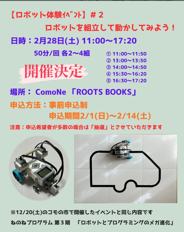Comoneのねのねプログラムでチーム閃きは『ロボットとプログラミングのメガ進化』と題してロボットを探求中です。