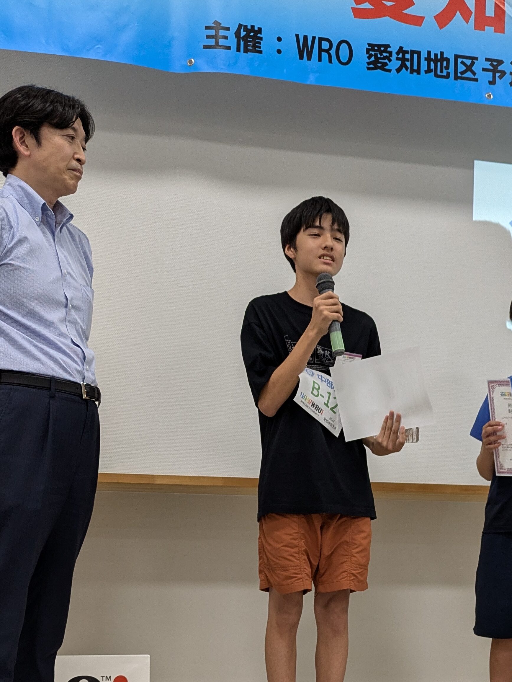 Y君はWRO2024で愛知県大会準優勝を果たし、全国大会へ進出しました。